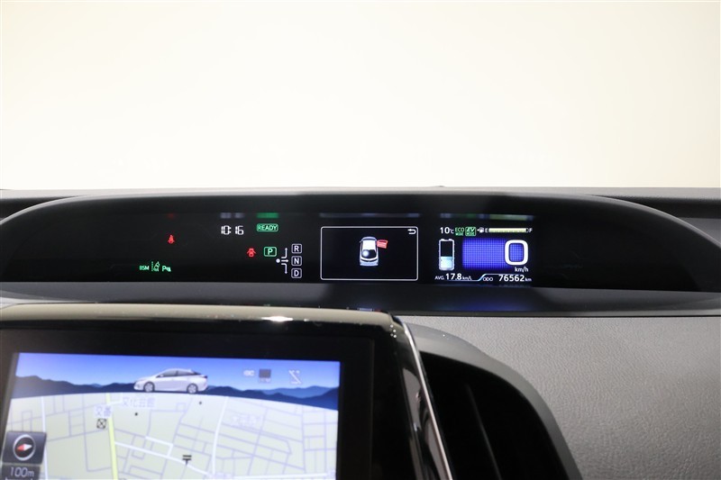 スマートキーを携帯し、パーキングブレーキがかかっている状態を確認をし、ブレーキペダルもしっかり踏込みながらパワースイッチを押すとREADYインジケーターが点灯しハイブリッドシステムの始動となります。