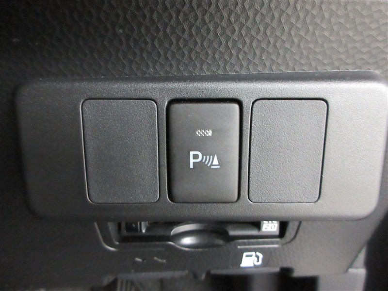 駐車するときの警告センサーのボタン。バック駐車のときに車体の後ろや横が障害物に当たりそうになると音が鳴る装置付き。