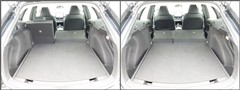 ラゲージに入りきらない長い荷物も分割リヤシートの片側を倒せば大丈夫。両方倒せば、もっと大きな荷物も積めます。便利な機能ですね!