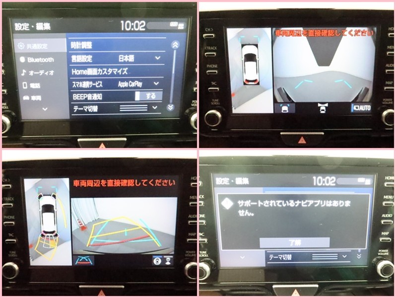 フロントモニター・サイドモニター・バックモニターを使用し、車を上から見たような画像が表示されますので、安心してお車の駐車が出来ますよ。尚、駐車時には必ず、お客様の目視にて駐車をお願い致します。