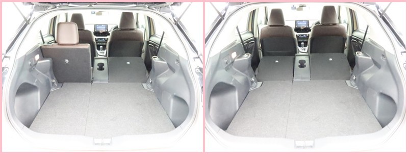 ラゲージに入りきらない長い荷物も分割リヤシートの片側を倒せば大丈夫。両方倒せば、もっと大きな荷物も積めます。便利な機能ですね!