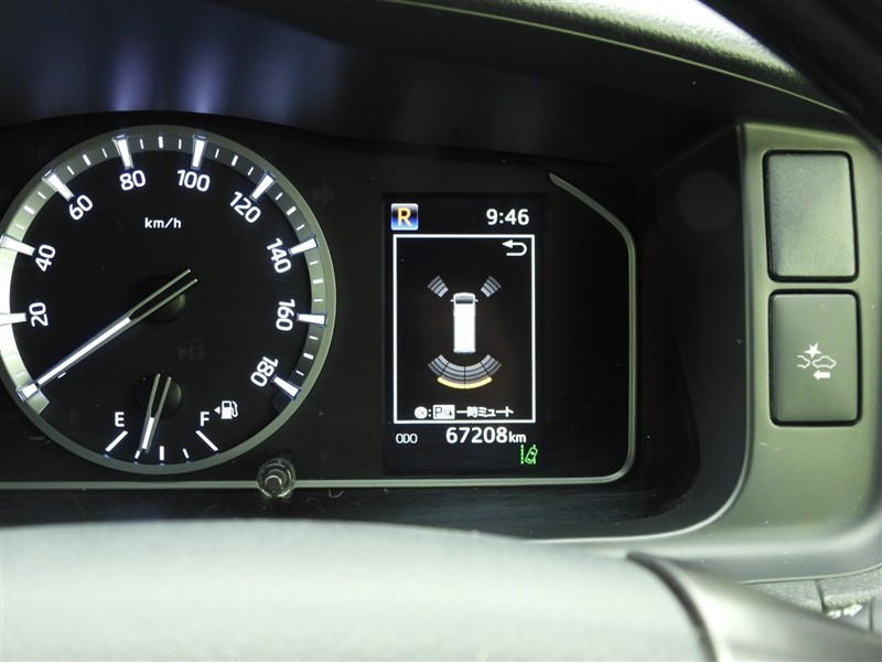 クリアランスソナー付きです。障害物に近づくと、表示や音声で警告してくれるので便利な機能です。必ず目視確認も実施して下さいませ。