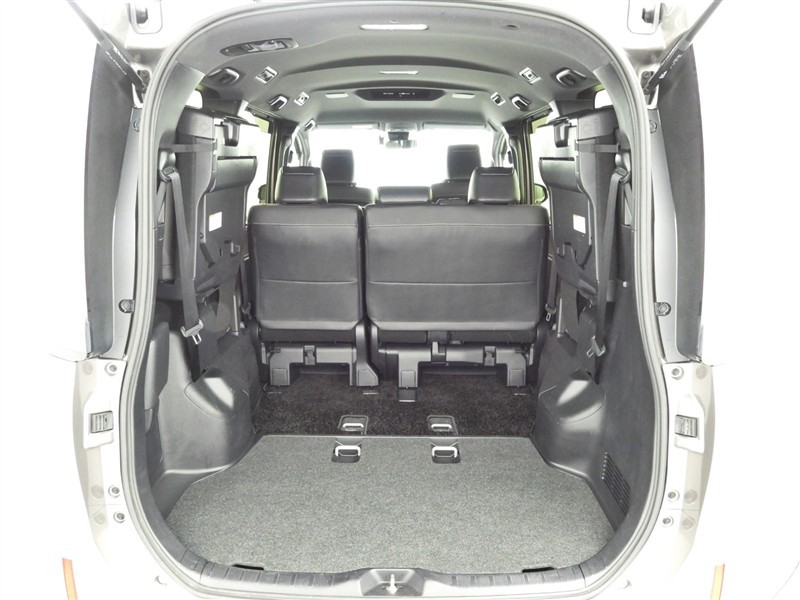 サードシートを左右に跳ね上げるとラゲージスペースが広がります。キャンプ用品など大きな荷物も収納可能です!