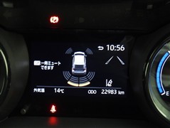 クリアランスソナー付きです。障害物に近づくと、表示や音声で警告してくれるので便利な機能です。必ず目視確認も実施して下さいませ。