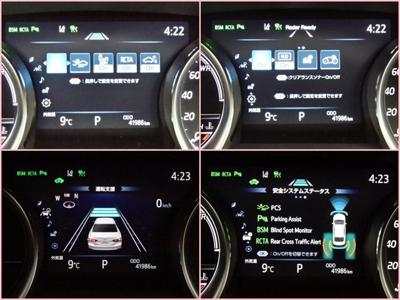 トヨタの安全装備TSSです。衝突被害軽減ブレーキシステム、車線逸脱予防機能、オートマチックハイビームが付いています。機能を過信されないよう、安全運転でお願い致します!