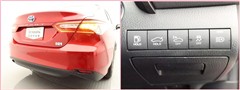クリアランスソナー付きです。障害物に近づくと、表示や音声で警告してくれるので便利な機能です。必ず目視確認も実施して下さいませ。
