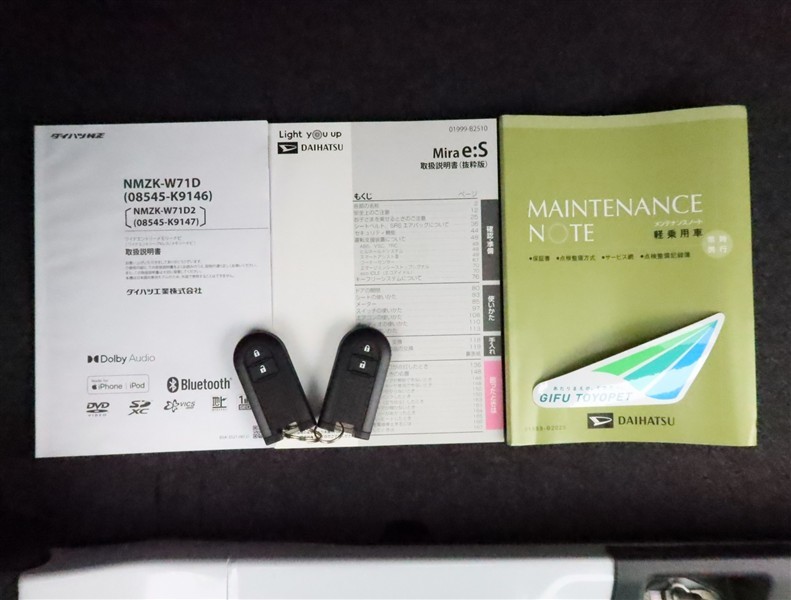 取扱説明書と整備記録簿(メンテナンスノート)が付いています。メンテナンスノートには、整備内容・走行距離等が記載されていますので安心ですね!