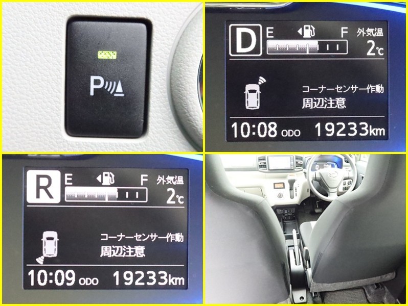 コーナーセンサー付きです。障害物に近づくと、表示や音声で知らせてくれる便利な機能です。車両感覚がつかみ易くなるので、オススメの装備です。