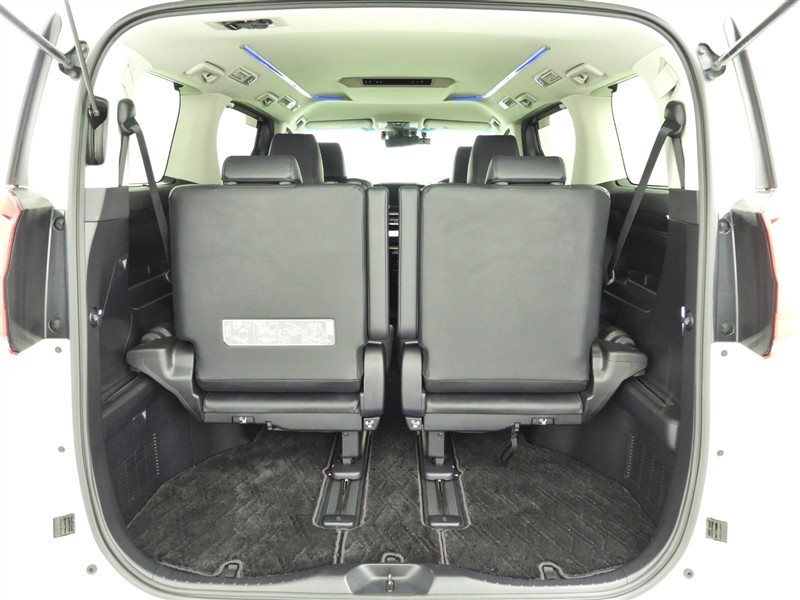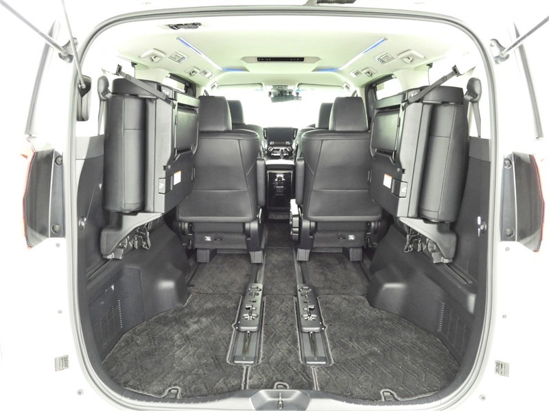サードシートを左右に跳ね上げるとラゲージスペースが広がります。キャンプ用品など大きな荷物も収納可能です!
