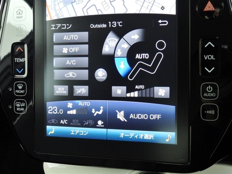 クリアランスソナー付きです。障害物に近づくと、表示や音声で警告してくれるので便利な機能です。
