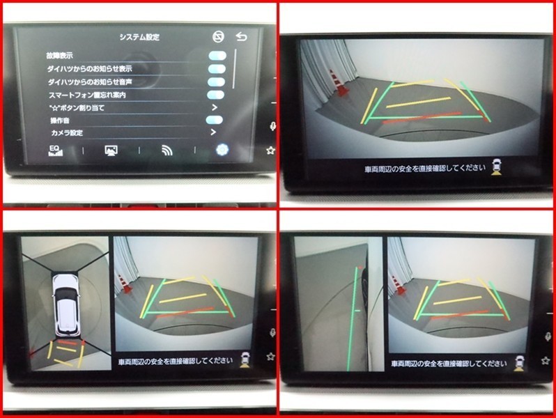 フロントモニター・サイドモニター・バックモニターを使用し、車を上から見たような画像が表示されますので、安心してお車の駐車が出来ますよ。尚、駐車時には必ず、お客様の目視にて駐車をお願い致します。