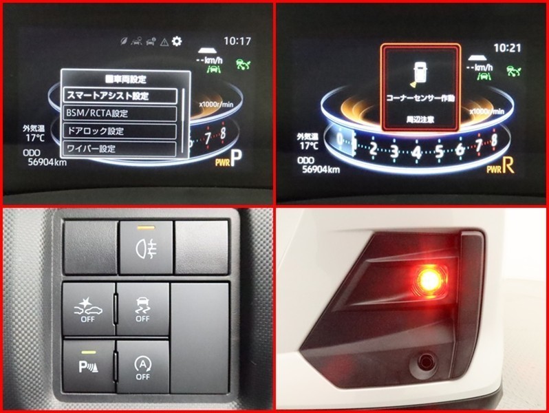 コーナーセンサー付きです。障害物に近づくと、表示や音声で知らせてくれる便利な機能です。車両感覚がつかみ易くなるので、オススメの装備です。
