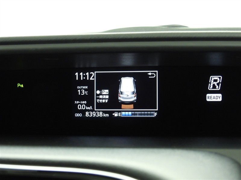 クリアランスソナー付きです。障害物に近づくと、表示や音声で警告してくれるので便利な機能です。必ず目視確認も実施して下さいませ。