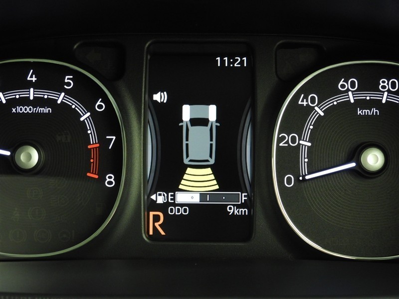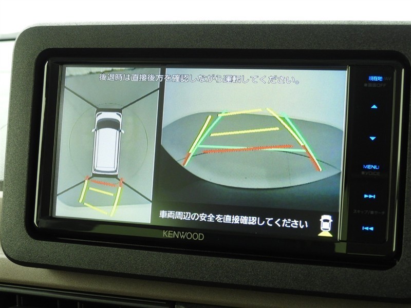 ソナーセンサー付きです。障害物に近づくと、表示や音声で知らせてくれる便利な機能です。車両感覚がつかみ易くなるので、オススメの装備です。