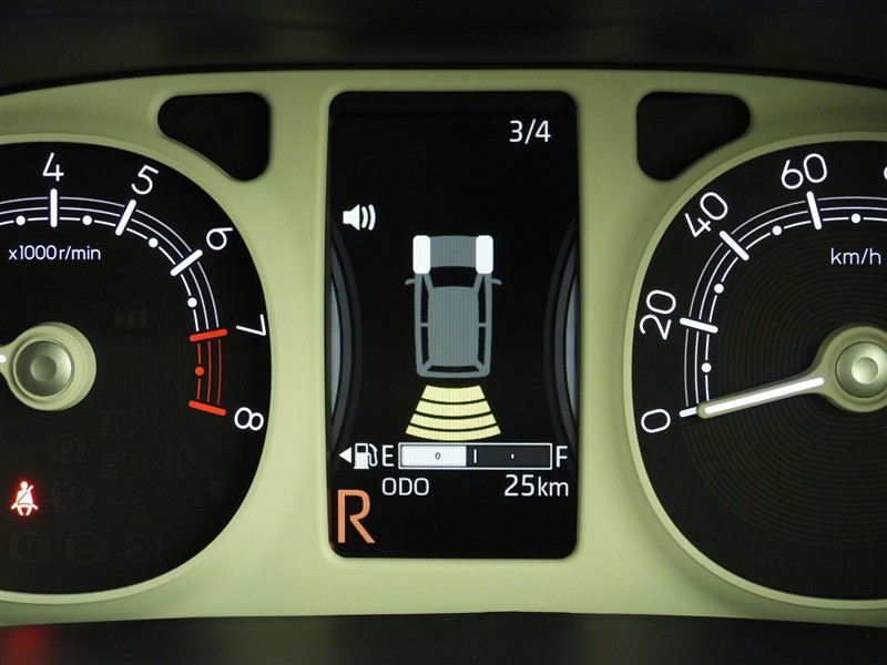 ソナーセンサー付きです。障害物に近づくと、表示や音声で知らせてくれる便利な機能です。車両感覚がつかみ易くなるので、オススメの装備です。