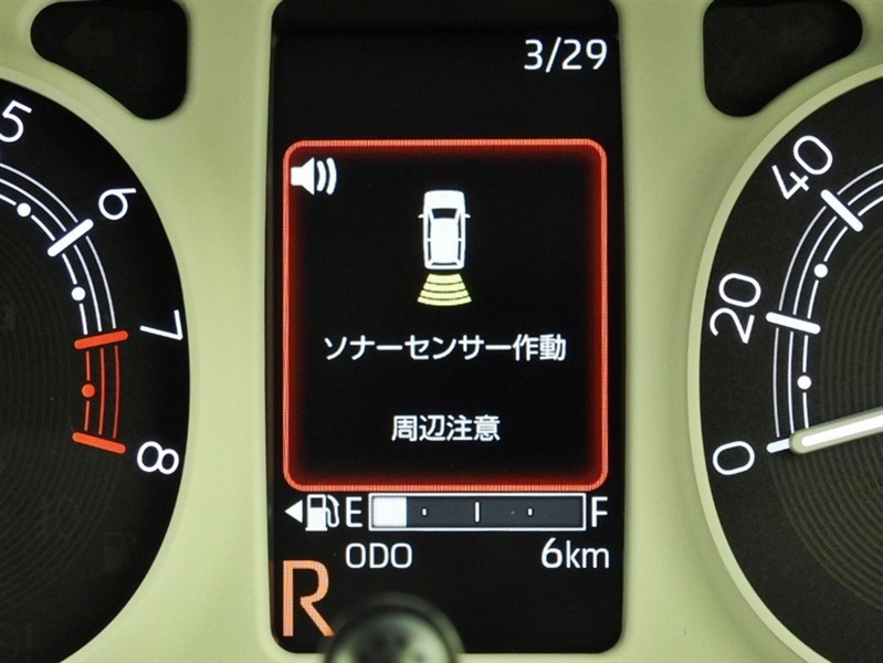 クリアランスソナー付きです。障害物に近づくと、表示や音声で警告してくれるので便利な機能です。