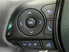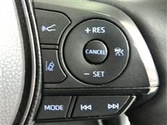 運転席側のステアリングスイッチです。クルーズコントロールの操作とオーディオの操作ができます。クルーズコントロールは高速道路走行時に燃費向上、運転者の疲労軽減に貢献します。