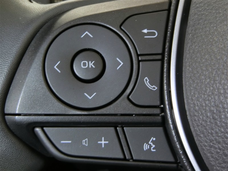 助手席側のステアリングスイッチです。インフォメーションディスプレイの切替とオーディオの音量調節ができます。