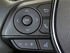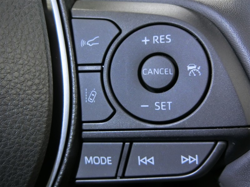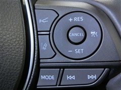 運転席側のステアリングスイッチです。クルーズコントロールの操作とオーディオの操作ができます。クルーズコントロールは高速道路走行時に燃費向上、運転者の疲労軽減に貢献します。