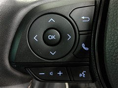 運転席側のステアリングスイッチです。クルーズコントロールの操作とオーディオの操作ができます。クルーズコントロールは高速道路走行時に燃費向上、運転者の疲労軽減に貢献します。
