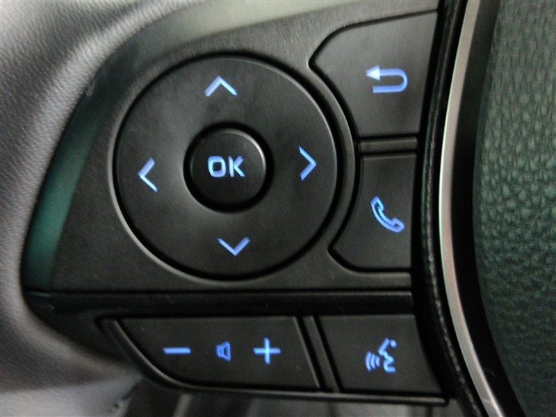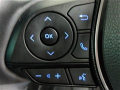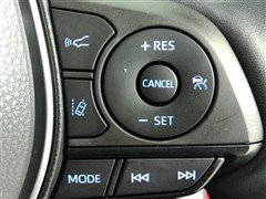 運転席側のステアリングスイッチです。クルーズコントロールの操作とオーディオの操作ができます。クルーズコントロールは高速道路走行時に燃費向上、運転者の疲労軽減に貢献します。