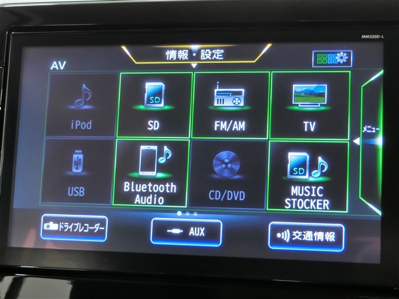 ステアリングには、オーディオコントロール、インフォーメーションコントロールスイッチが付いて手元で操作ができます。