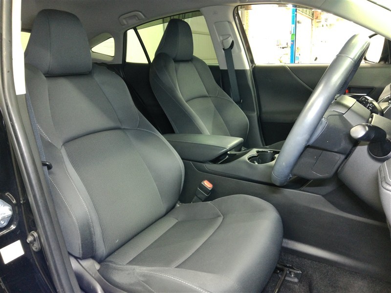 助手席側からの前席ビューです。ファブリックで包み込んだベーシックなシートです。通気性が良くて蒸れにくい上に、保温性も高いので冬場でも冷えを感じにくいです♪