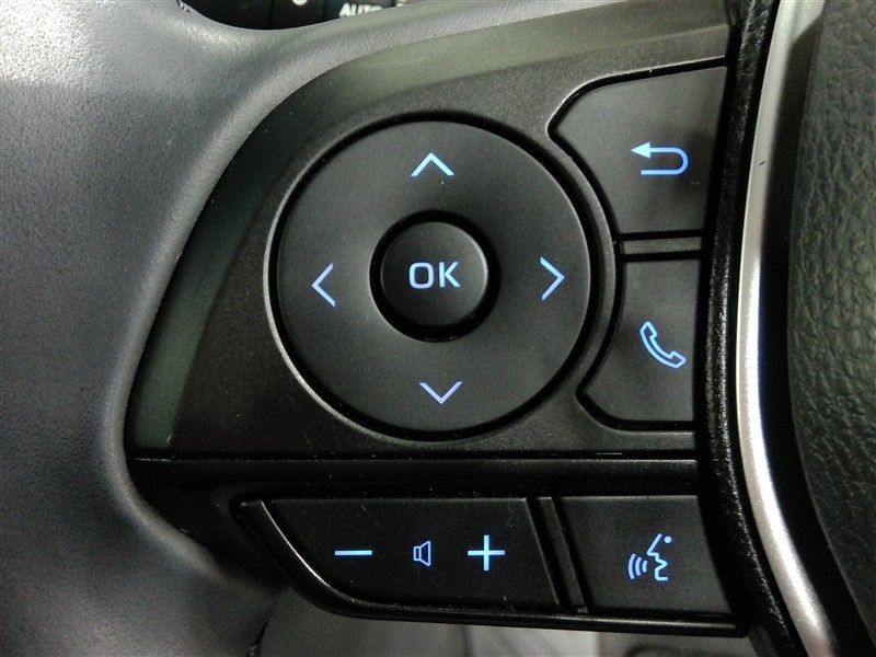 助手席側のステアリングスイッチです。インフォメーションディスプレイの切替とオーディオの音量調節ができます。