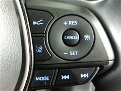 運転席側のステアリングスイッチです。クルーズコントロールの操作ができます。クルーズコントロールは高速道路走行時に燃費向上、運転者の疲労軽減に貢献します。