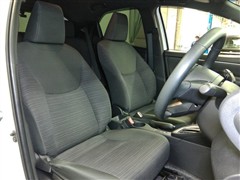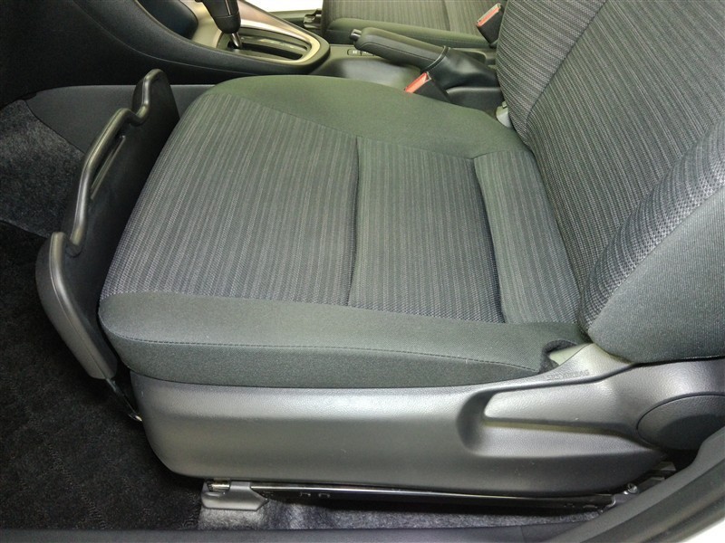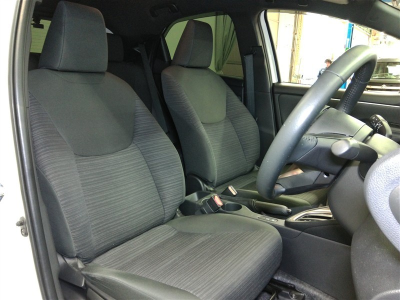 助手席側からの前席ビューです。ファブリックで包み込んだベーシックなシートです。通気性が良くて蒸れにくい上に、保温性も高いので冬場でも冷えを感じにくいです♪
