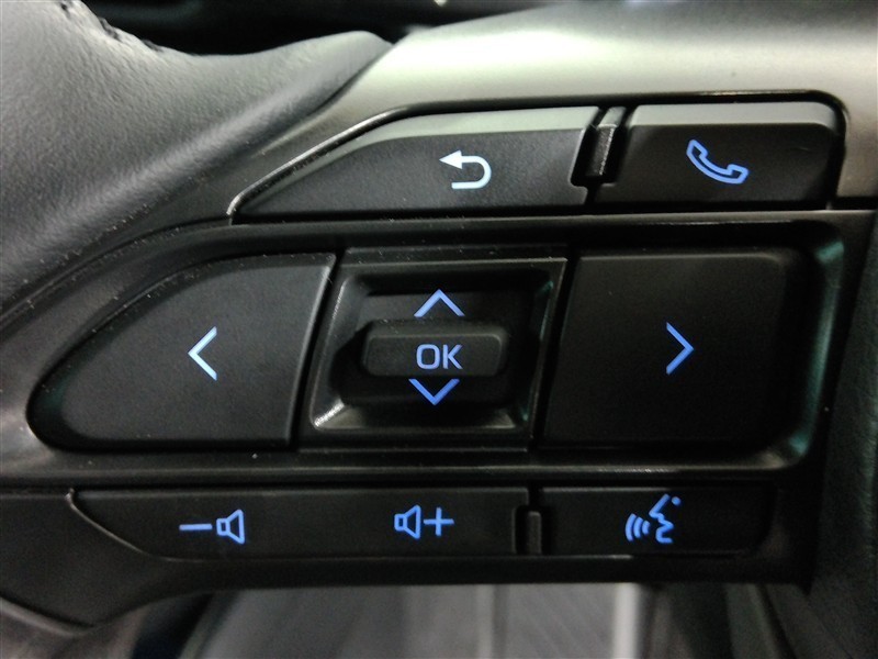 助手席側のステアリングスイッチです。インフォメーションディスプレイの切替とオーディオの音量調節ができます。