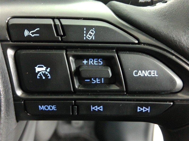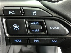 運転席側のステアリングスイッチです。クルーズコントロールの操作とオーディオの操作ができます。クルーズコントロールは高速道路走行時に燃費向上、運転者の疲労軽減に貢献します。