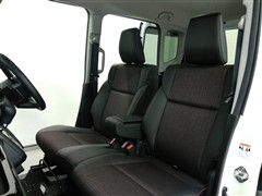 助手席側からの前席ビューです。ファブリックで包み込んだベーシックなシートです。通気性が良くて蒸れにくい上に、保温性も高いので冬場でも冷えを感じにくいです♪