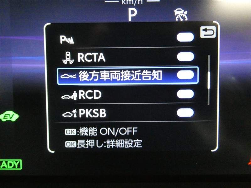 車線変更時などに、ドアミラーでは確認しにくい後側方エリア(ブラインドスポット)に存在する車両をレーダーで検知。警告サインをドアミラー等に表示することで、運転者に注意喚起する機能。