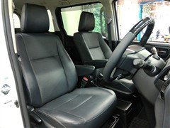 助手席側からの前席ビューです。ファブリックで包み込んだベーシックなシートです。通気性が良くて蒸れにくい上に、保温性も高いので冬場でも冷えを感じにくいです♪