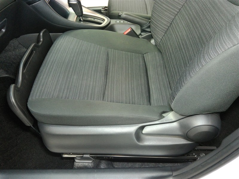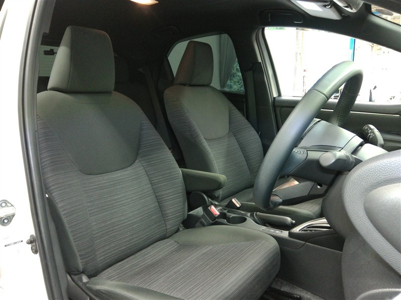 助手席側からの前席ビューです。ファブリックで包み込んだベーシックなシートです。通気性が良くて蒸れにくい上に、保温性も高いので冬場でも冷えを感じにくいです♪