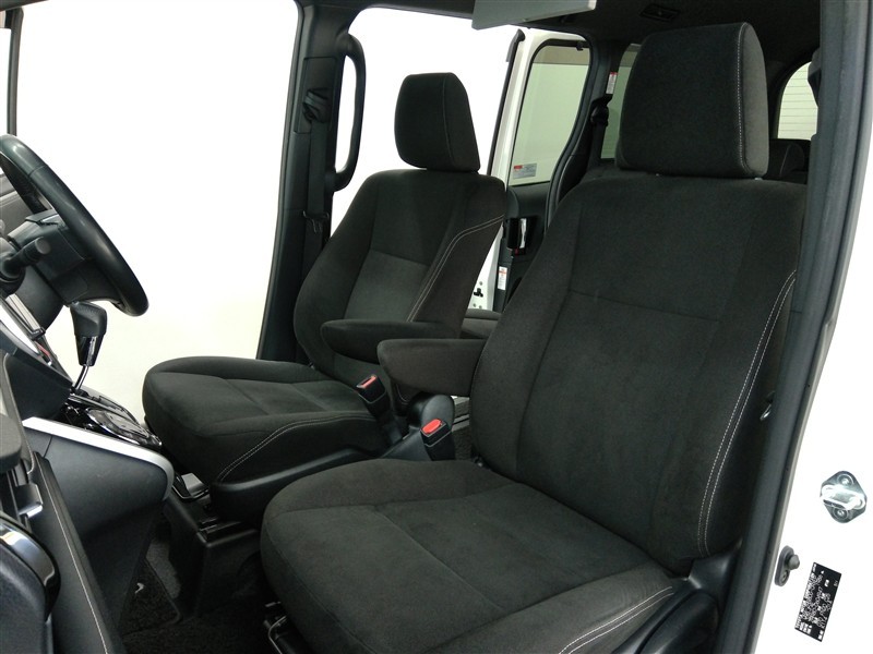 助手席側からの前席ビューです。ファブリックで包み込んだベーシックなシートです。通気性が良くて蒸れにくい上に、保温性も高いので冬場でも冷えを感じにくいです♪