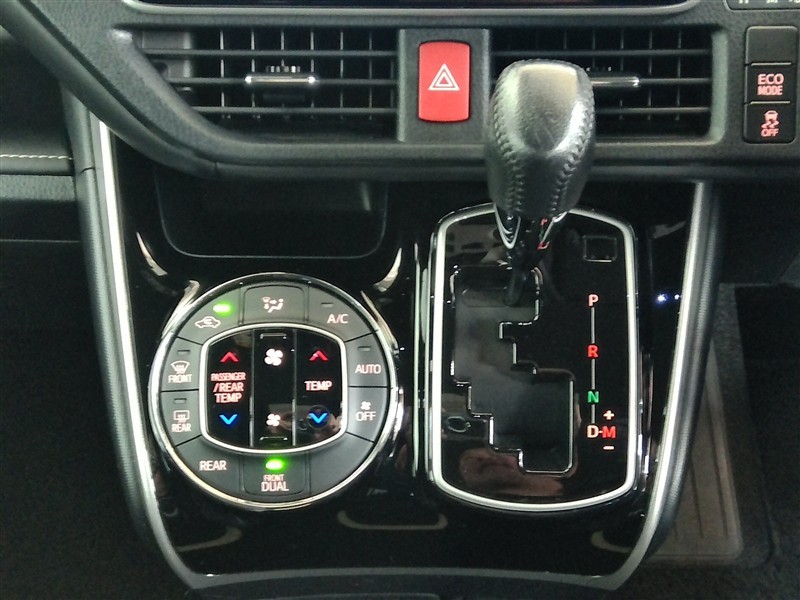 シフトレバー付近です。 左右独立温度コントロールフルオートエアコンです。運転席、助手席それぞれで独立して温度設定ができます。冷え性の方が乗っても安心ですね♪