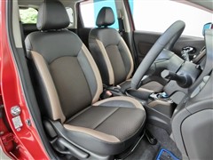 助手席側からの前席ビューです。ファブリックで包み込んだベーシックなシートです。通気性が良くて蒸れにくい上に、保温性も高いので冬場でも冷えを感じにくいです♪