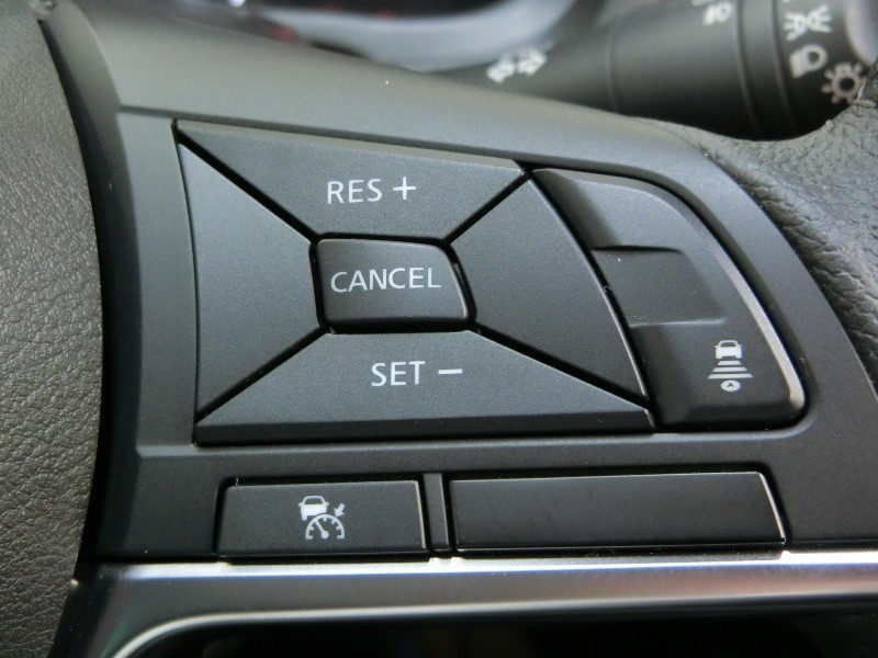 運転席側のステアリングスイッチです。クルーズコントロールの操作ができます。クルーズコントロールは高速道路走行時に燃費向上、運転者の疲労軽減に貢献します。