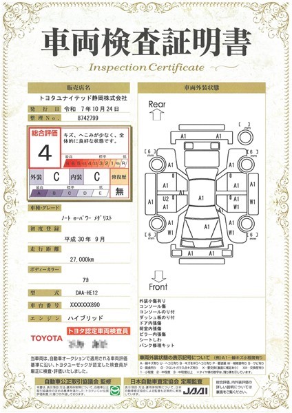 車両検査証明書です。
