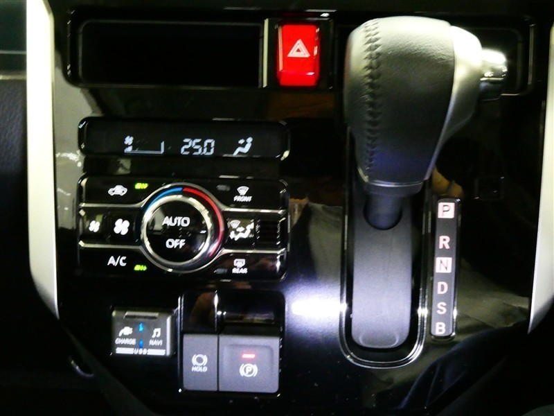 プッシュ式エンジンスタートボタンです。勿論スマートキーは、バックに入れたままでOKです!