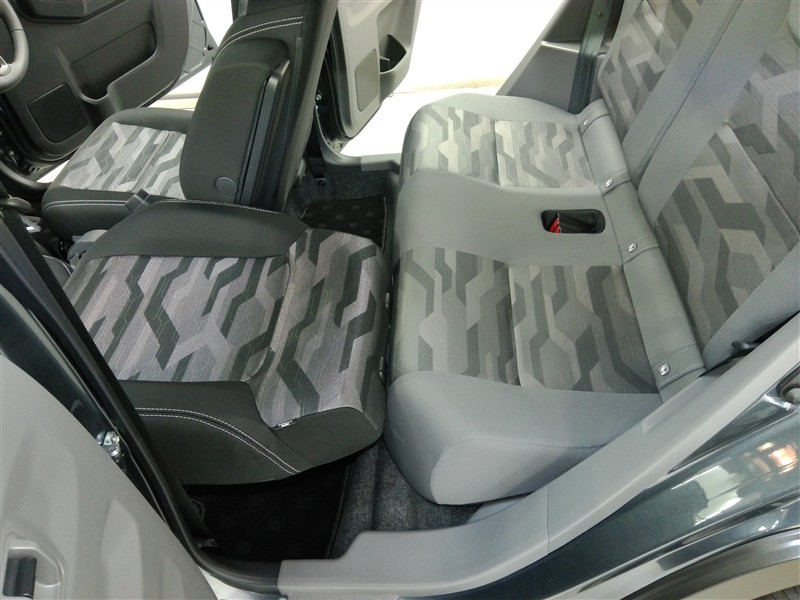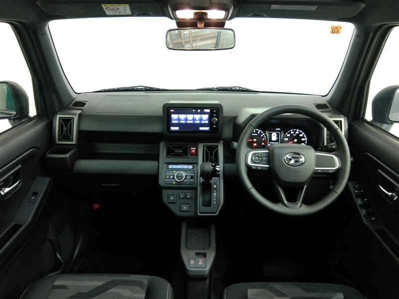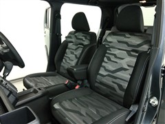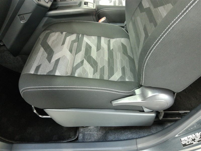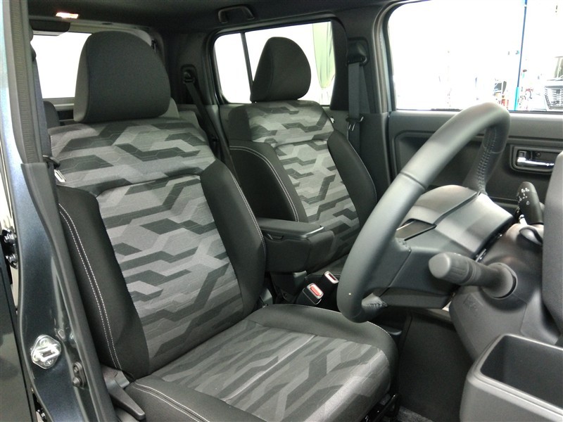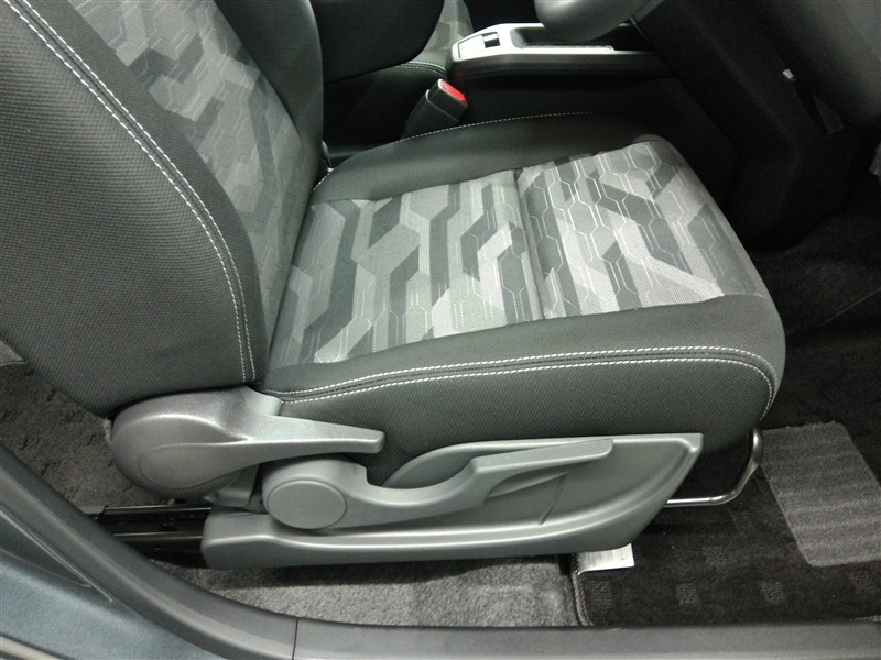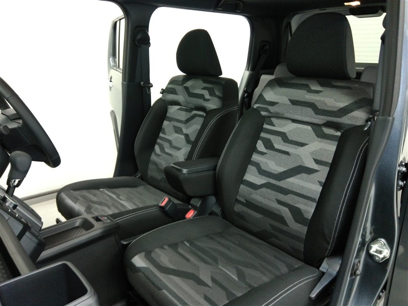 助手席側からの前席ビューです。ファブリックで包み込んだベーシックなシートです。通気性が良くて蒸れにくい上に、保温性も高いので冬場でも冷えを感じにくいです♪