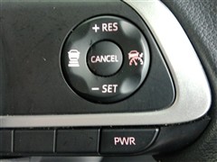 運転席側のステアリングスイッチです。クルーズコントロールの操作ができます。クルーズコントロールは高速道路走行時に燃費向上、運転者の疲労軽減に貢献します。