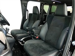 助手席側からの前席ビューです。ファブリックで包み込んだベーシックなシートです。通気性が良くて蒸れにくい上に、保温性も高いので冬場でも冷えを感じにくいです♪