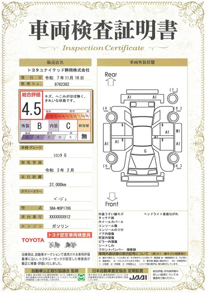 ※ 「定期点検整備なし(要整備箇所あり)」の場合、整備箇所につきましては、販売店へお問い合わせください。