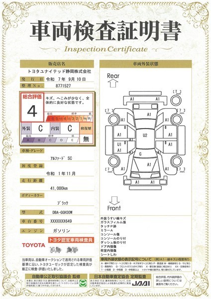 車両検査証明書付き
