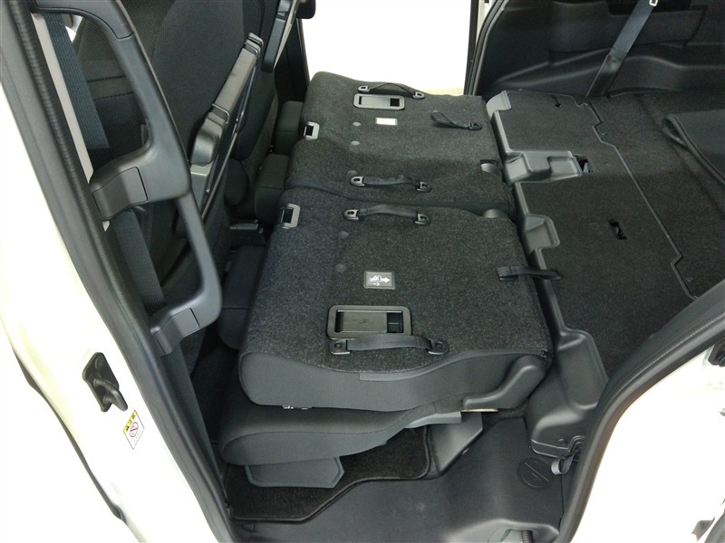 後席を折りたたみフラットな室内空間です。