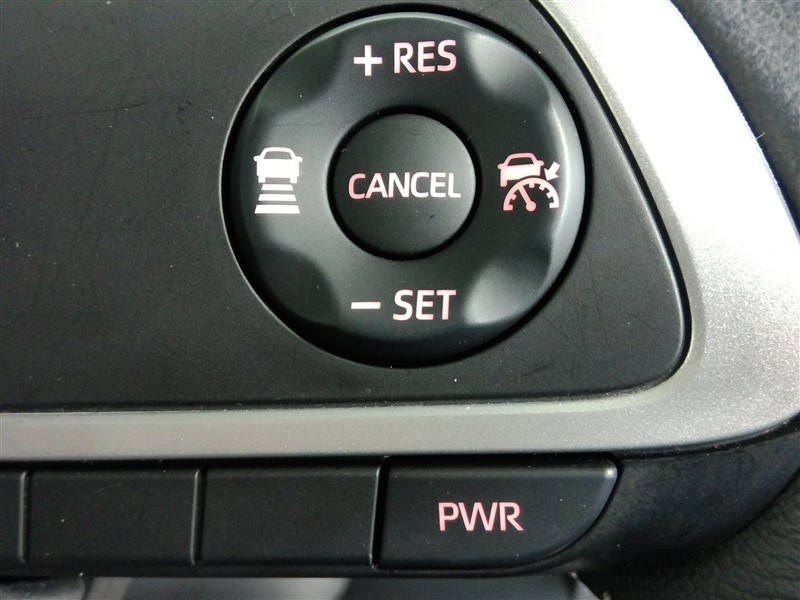 運転席側のステアリングスイッチです。クルーズコントロールの操作ができます。クルーズコントロールは高速道路走行時に燃費向上、運転者の疲労軽減に貢献します。
