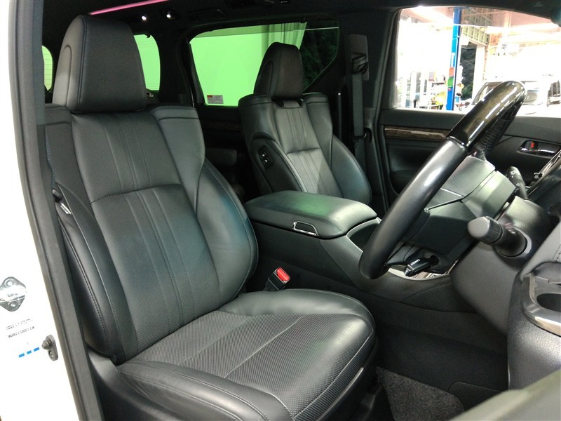 助手席側からの前席ビューです。本革シートが高級感を漂わせますね♪